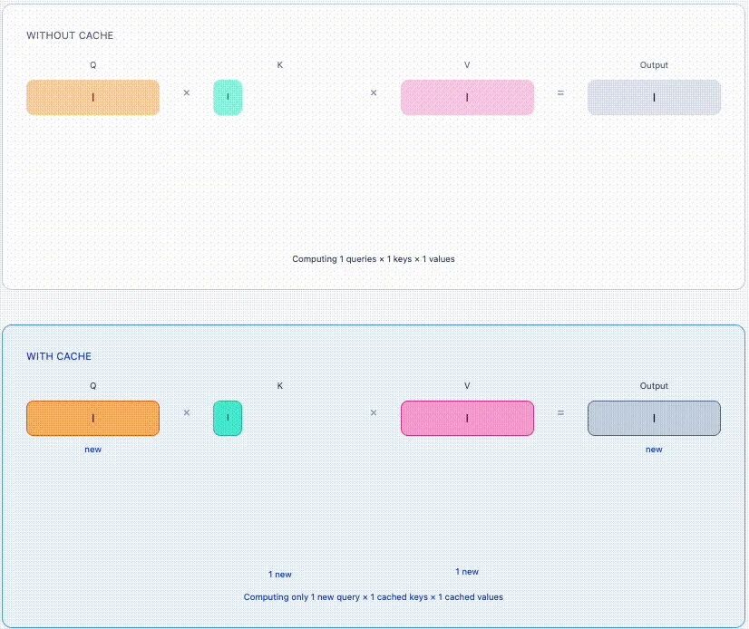 老实说,这并不像发明一种新算法,你只是不再做重复劳动。这就是 KV 缓存的作用:过去不再重新计算,而是被记住。