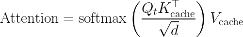 启用 KV 缓存后,方程本身_并未_改变,但 K 和 V 的来源变了 。