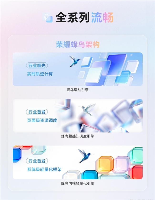 荣耀Magic8 Pro以219.64流畅分排第九,其系统MagicOS 10此次首发的“荣耀蜂鸟架构”针对流畅下了不少功夫,其中蜂鸟运动引擎就可根据操作的力度与方向,实时生成专属轨迹,大幅提升操作直觉性与跟手感;蜂鸟超感知调度引擎,则能动态将系统资源集中调度至关键页面,极大提升响应速度;蜂鸟内核轻量化引擎,实现存储、内存、负载三方面的轻量化。