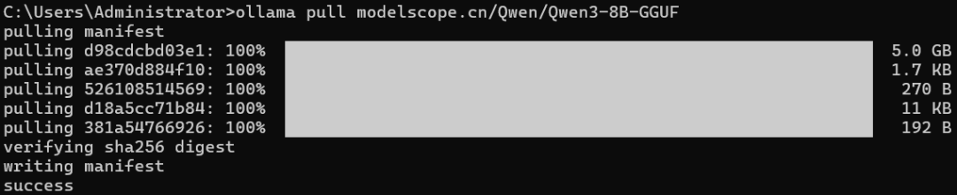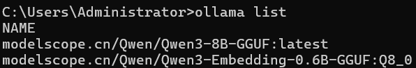 ollama pull modelscope.cn/Qwen/Qwen3-8B-GGUF