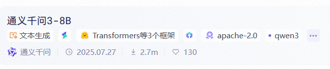 我们需要在魔搭社区中找到你想要本地部署的模型,比如这里我选择的是阿里通义千问的qwen3-8b模型。