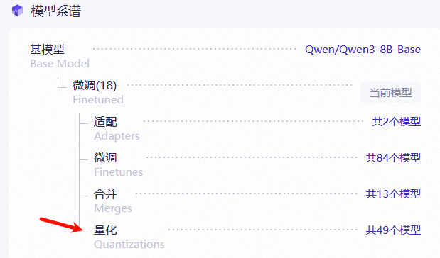 点进去模型的主页,然后我们找到右侧模型谱系的量化。
