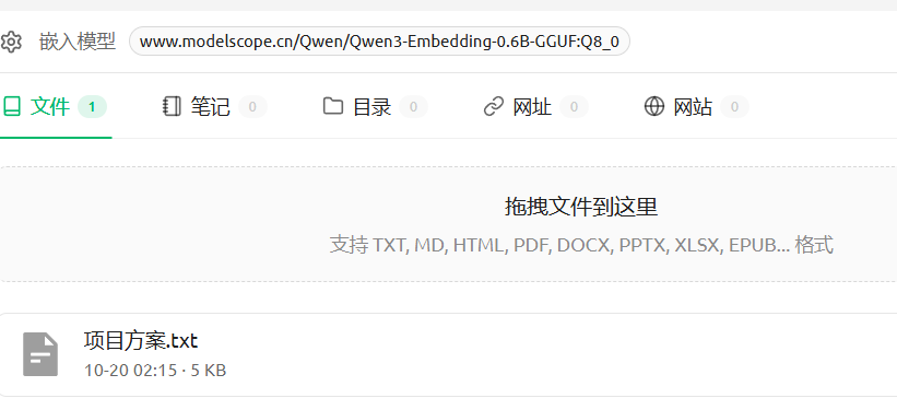 设置好之后,我这里创建了一个虚拟的公司项目方案,然后把他保存为了txt格式传入到了知识库。