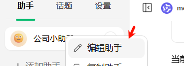 最后一点补充,如果你发现你每个问题他都要去找一遍知识库,甚至是一些和知识库无关的问题。这时候你可以右键点击助手。选择编辑助手。