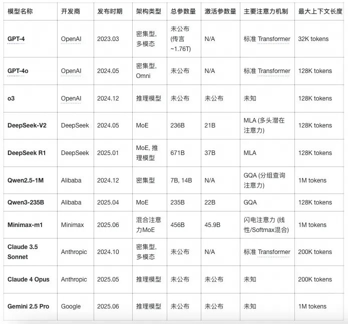 1.效率(Efficiency): 通过稀疏化(MoE)和先进的注意力机制(MLA、混合注意力)实现。效率创新使得巨大的模型规模和超长的上下文处理在经济上具有可行性,为后续发展奠定了基础。