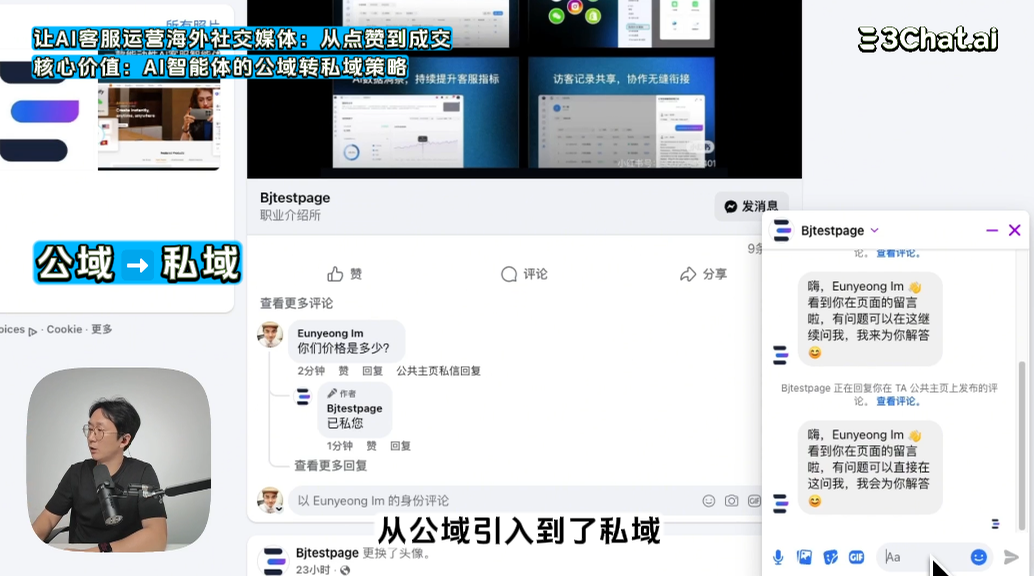 您的AI客服能主动监测Facebook评论并引导用户私信吗?本文揭秘3Chat AI如何通过Webhook和自动化流程,实现对粉丝评论的自动回复和私信(DM)打招呼,高效完成用户从公域到私域的转化留存。