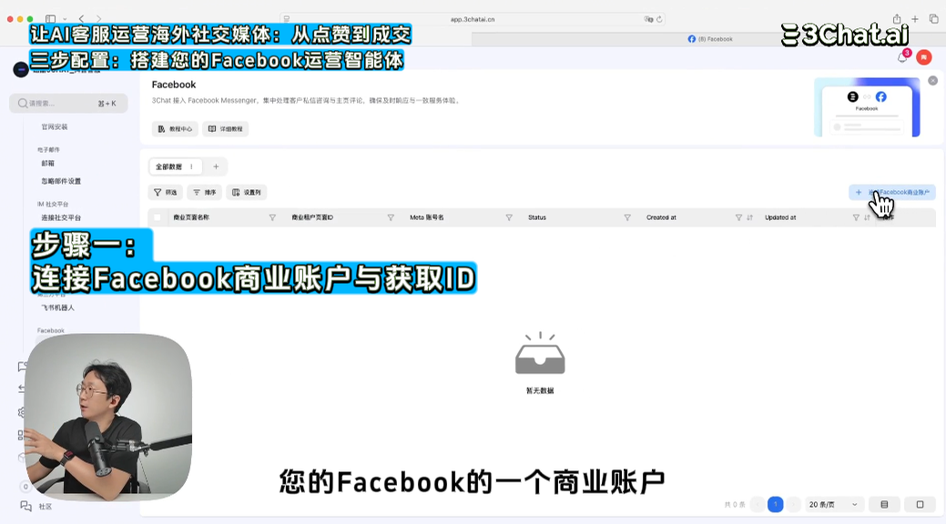 渠道连接: 进入 3Chat 后台的【渠道】➡️【Facebook】。