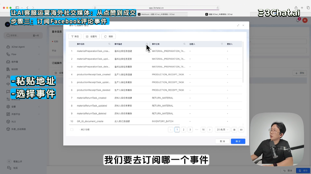 - 接收事件: 将 Webhook 地址保存下来,用于接收 3Chat 转译过来的评论内容。