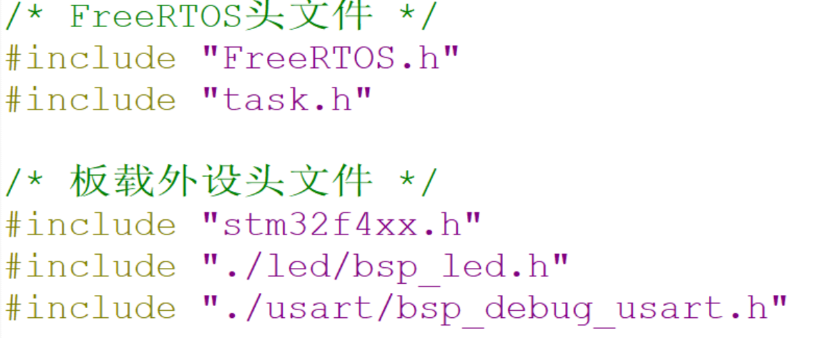 1.在main.c中添加FreeRTOS相关头文件和板载外设的头文件