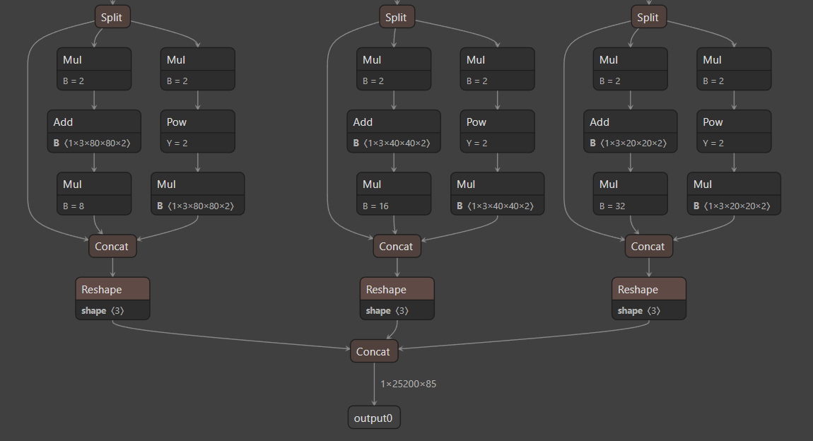 如果检测类别是7个类别,那么就会变成1*25200*( 4 + 1 + 7)。
