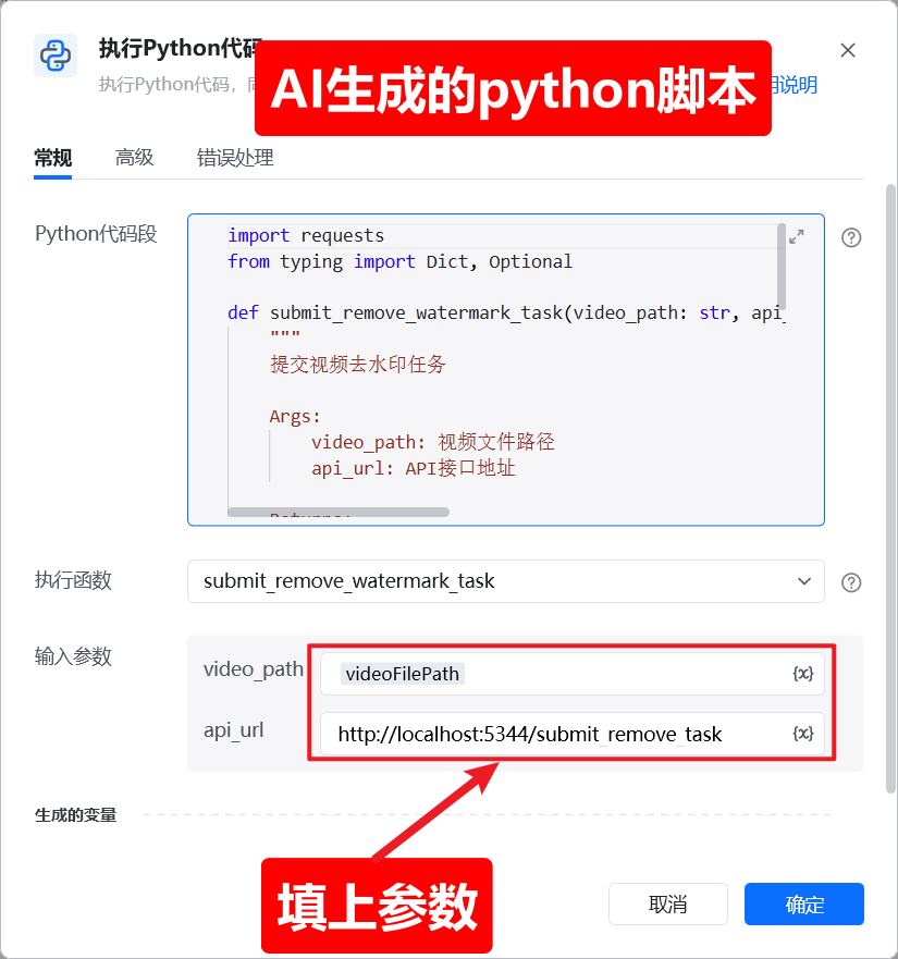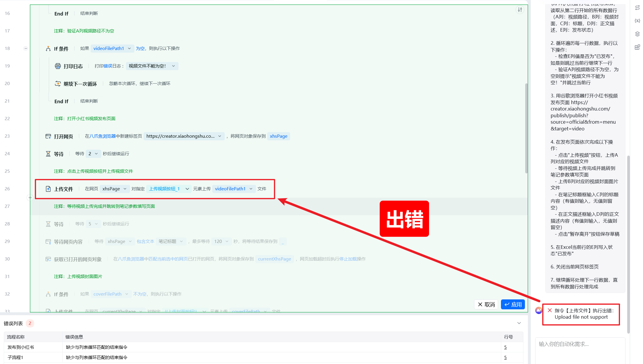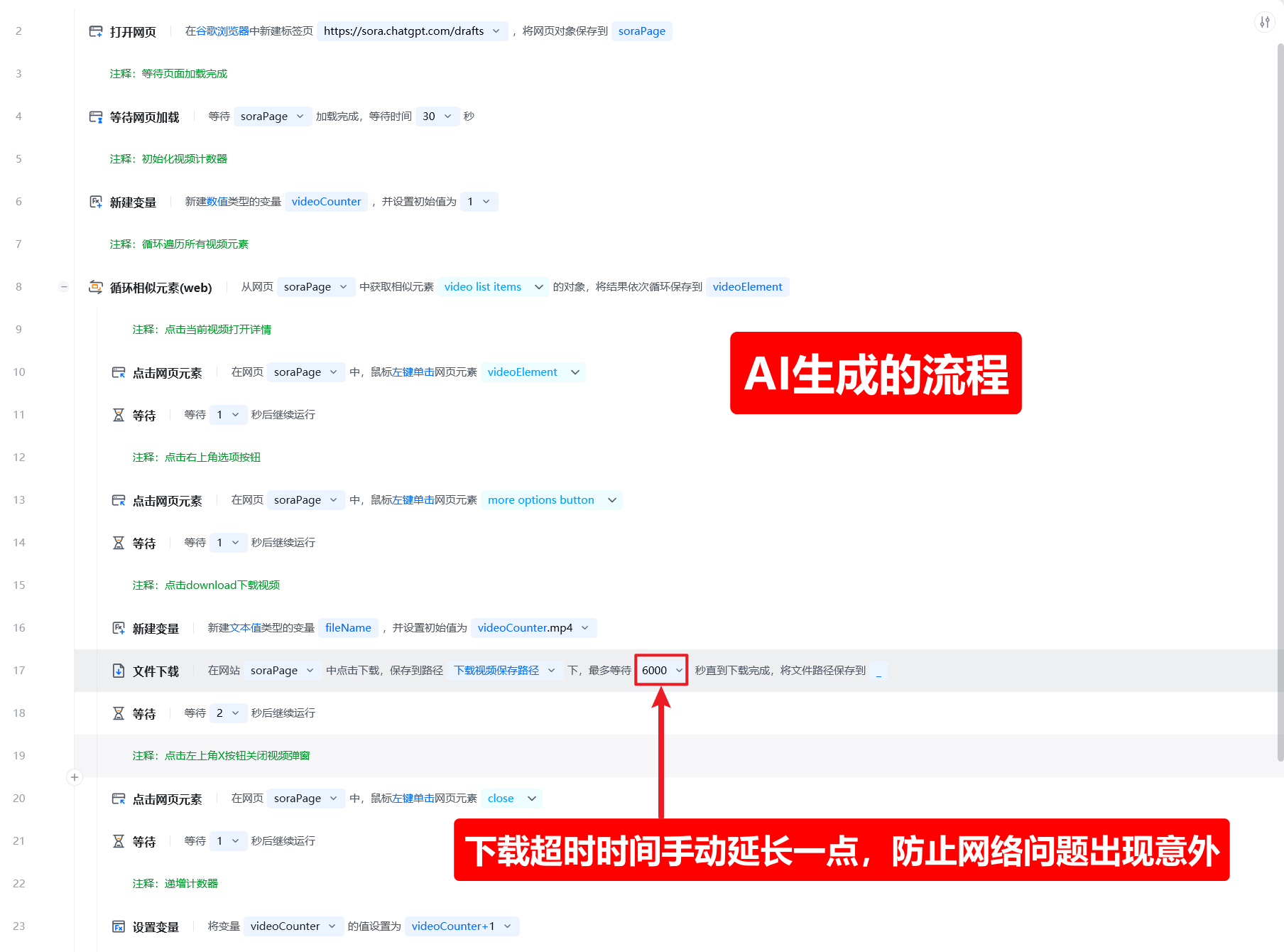AI生成的流程有时候不是很完美,运行后如果发现有问题,细节需要微调,可以手动修改一下:
