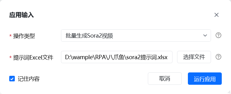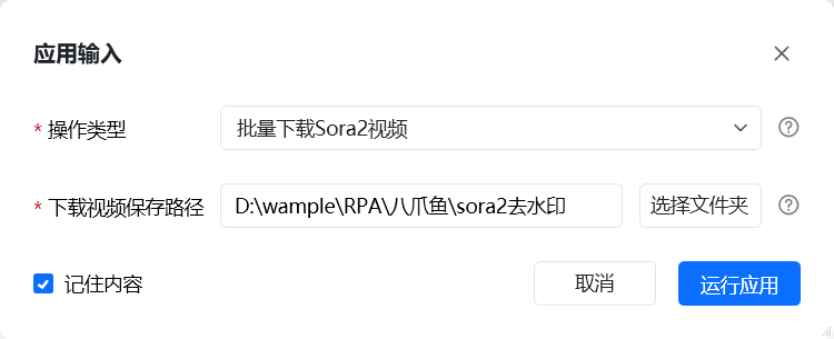 操作类型: 每个流程都必须选择的,他是路由到不同流程的依据。目前功能包括:批量生成Sora2视频,批量下载Sora2视频,批量去除Sora2水印,批量发布(小红书等多个视频平台),后续会扩充更多功能,构建全流程生产流水线