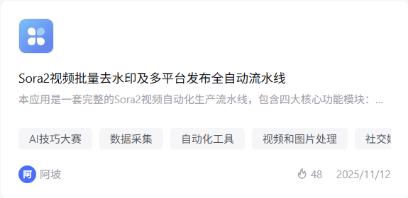 至此,我们已经成功构建了一套完整的Sora2视频自动化生产流水线——从批量生成视频、批量下载,到批量去除水印,再到批量发布到小红书,实现了全流程的自动化闭环。