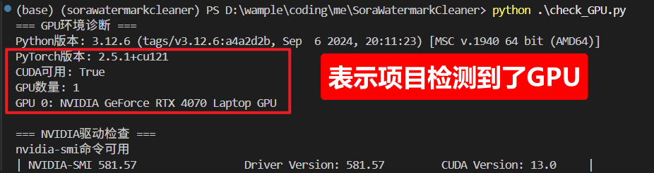 因此,电脑最好支持GPU,这样去水印速度会比较快,因此在运行项目之前,最好创建一个检测脚本,看下电脑GPU情况,测试脚本如下: