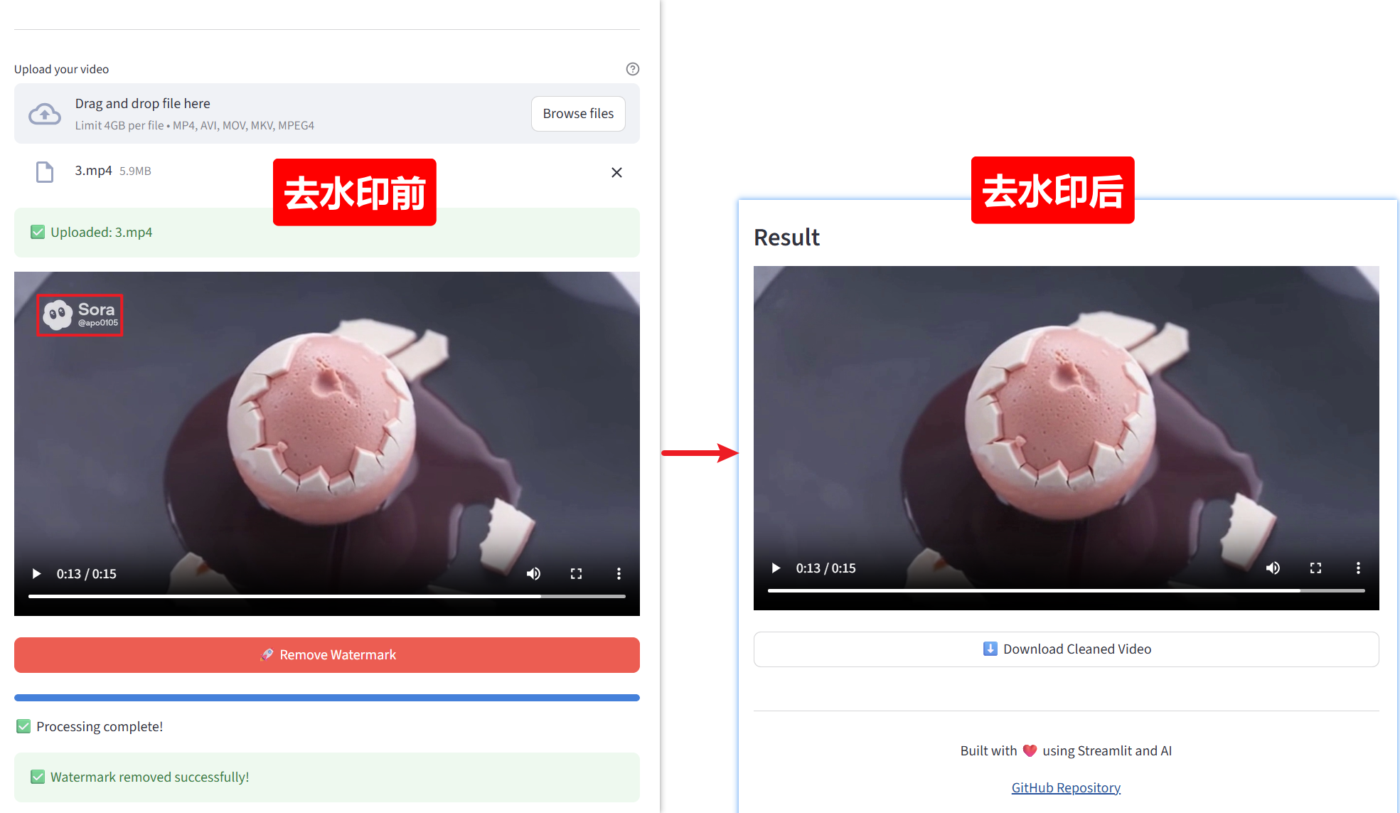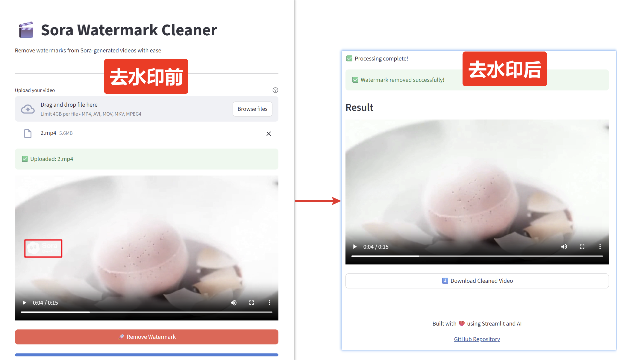 github地址:https://github.com/linkedlist771/SoraWatermarkCleaner