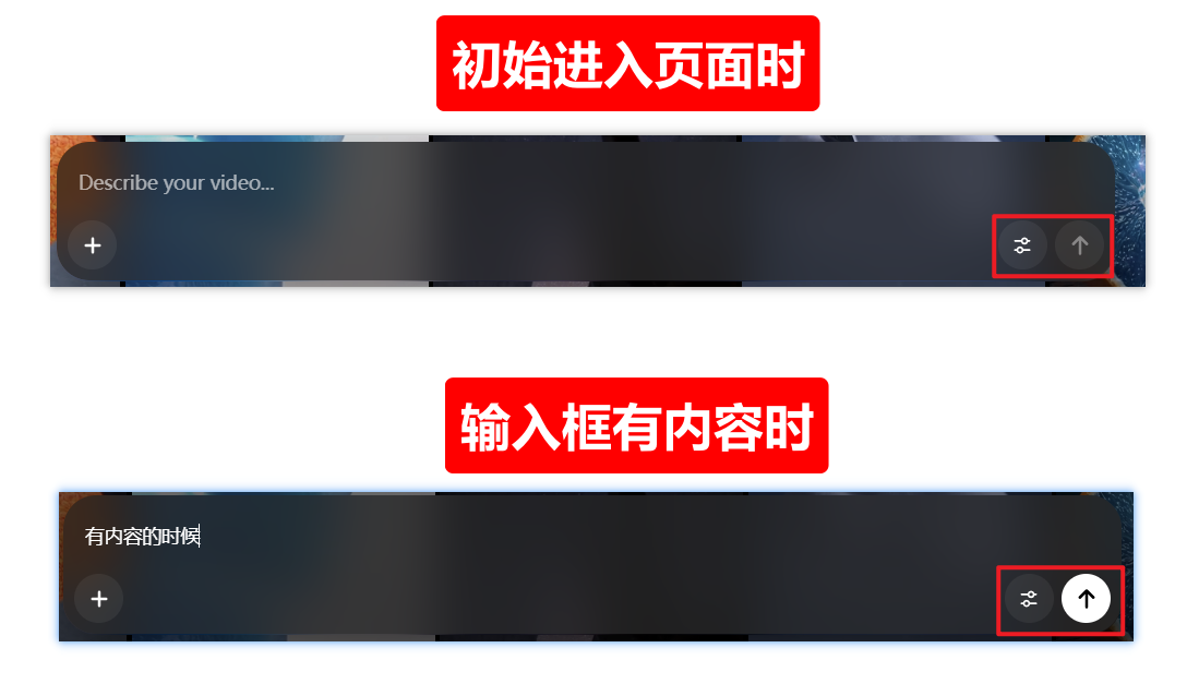 生成视频的输入框,在初始进入的时候,和已经输入内容时,由于右侧生成视频按钮(即回车触发)的状态是不一样的,这会导致 Settings 按钮的定位元素xpath也会跟着变: