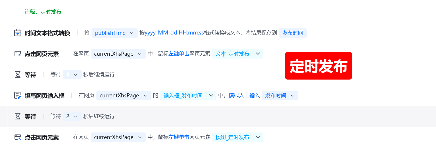 6) 点击,定时发布选项,输入E列“发布时间”的值,然后点击"定时发布"按钮