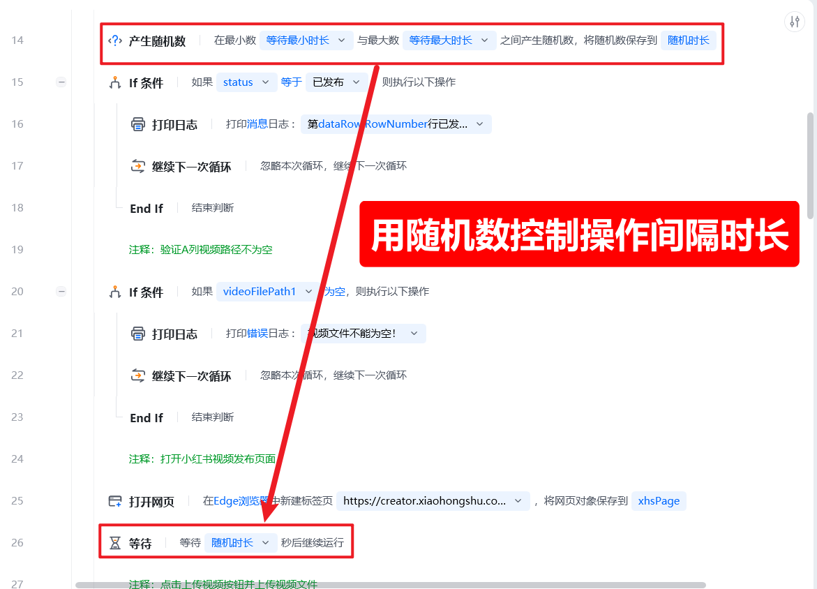 另外,小红书风控比较严格,没操作一步,都会设置一个随机等待时间,操作速度要尽可能的慢: