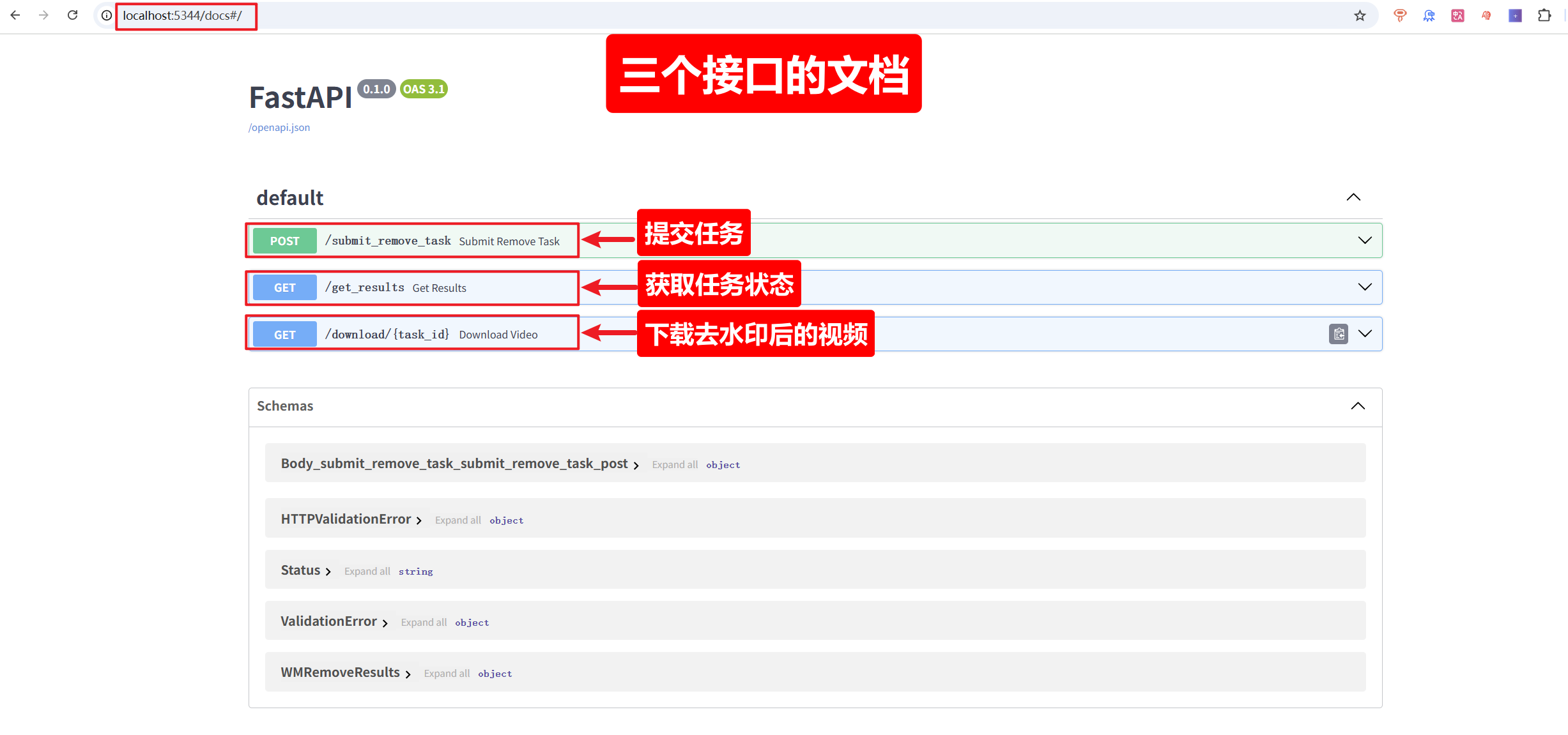 可以通过 http://localhost:5344/docs 查看接口文档,共三个接口: