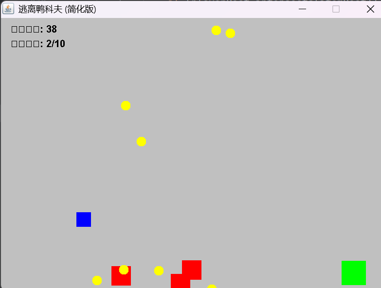 下面是一个使用 Java Swing 实现的简化版 "逃离鸭科夫" 小游戏,包含核心玩法:控制角色收集道具、躲避敌人并在限时内到达撤离点。