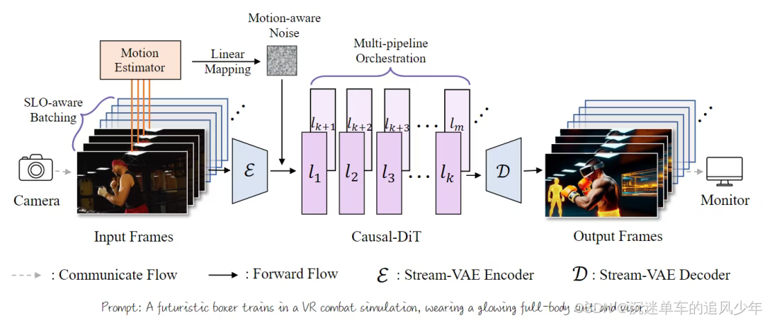 Stream-VAE。StreamDiffusionV2集成了一个为流式推理设计的低延迟Video-VAE变体。Stream-VAE不是编码长序列,而是处理短的视频块(例如4帧),并在每个3D卷积内部缓存中间特征,以维持时序的连贯性。