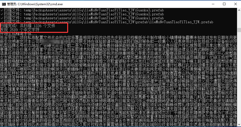 要提取中文字,我们只需要按照上面的原理,遍历我们的游戏项目中的游戏配置、预制体、场景和代码进行匹配即可。