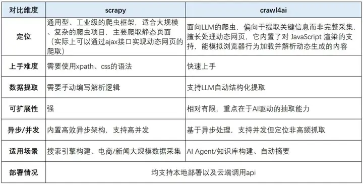 本文比较了两种网页爬取方法:传统Scrapy框架与基于大语言模型(LLM)的Crawl4AI。在Scrapy部分,详细介绍了创建项目、配置Item、XPath解析网页内容以及数据存储等流程。Crawl4AI部分展示了如何通过提示词提取结构化信息、自动生成Markdown、以及外部/内部调用LLM进行智能内容提取。对比发现,传统方法需要精细的HTML解析,而LLM方法通过语义理解简化了提取流程。两种