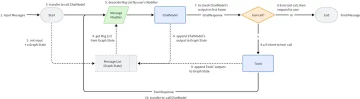 ▪ 提供ChatModel、ToolNode、PromptTemplate等常用组件,业务可定制扩展。