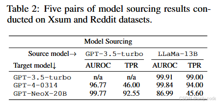 对于未知源模型的检测,他们尝试用小型代理模型(如 OPT-125M、GPT-2-124M)来重采样,尽管性能不如“自举式检测”,但在 Reddit 数据上仍取得了中等 AUROC,说明即使不知道原始生成模型是谁,也可以通过一个通用的小模型获得一定的检测能力。