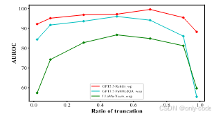 截断率 则在 0.02 到 0.98 区间上做了系统扫描。结果显示,当截断太短时,前缀信息不足,模型续写变得极其多样,导致机器与人类的差异被噪声淹没;当截断太长时,留给续写的空间太小,模型几乎只能微调几个词,重合 n-gram 不再能有效区分。综合多种模型和数据集的曲线,