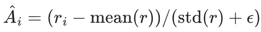 GRPO(Group Relative Policy Optimization,群组相对策略优化)是DeepSeek团队于2024年提出的强化学习算法,核心创新在于通过“群组相对优势”机制实现轻量级策略优化。与传统PPO算法相比,GRPO移除价值网络(Critic),仅保留策略模型、参考模型和奖励模型,通过同一问题采样G个回答(通常G=4-8),计算组内奖励的均值与标准差进行归一化优势估计: