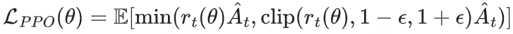 PPO(Proximal Policy Optimization,近端策略优化)是OpenAI于2017年提出的强化学习算法,基于Actor-Critic架构,通过同时训练策略网络(Actor)和价值网络(Critic)实现稳定策略优化。其核心创新是裁剪式目标函数: