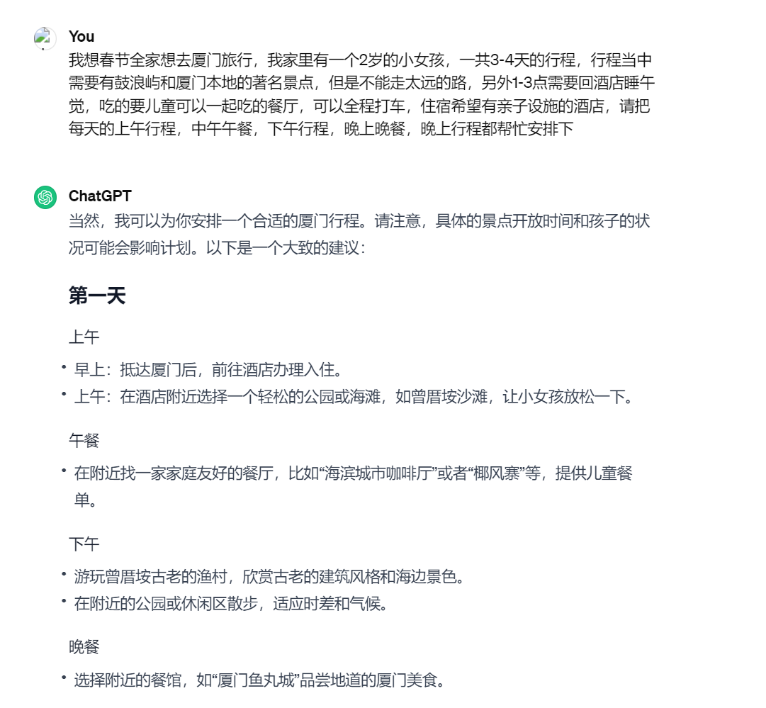 旅行规划与建议:用户可以获取关于目的地的详细信息、旅行建议、行程规划帮助,甚至语言翻译服务,使旅行准备更加轻松。