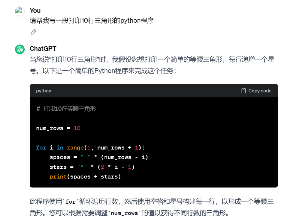 编程辅助:开发者可以借助大模型来生成代码片段、调试代码或理解复杂的编程概念,加速软件开发过程。