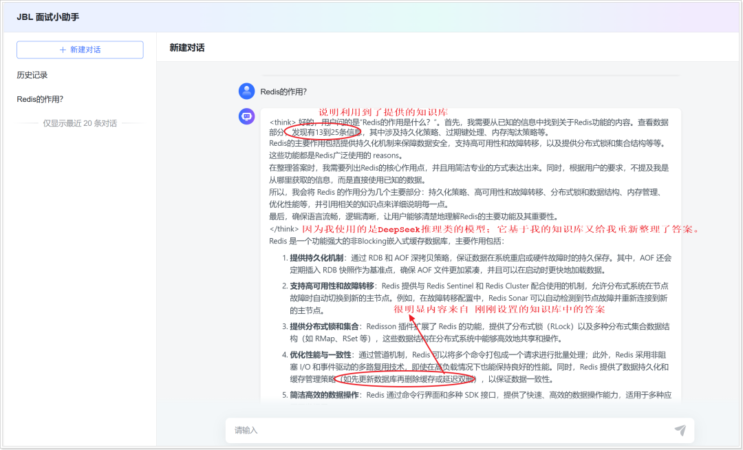 通过上面对大模型提问;发现它已经使用了我们提供的知识库文档,然后基于这些内容再回答。这里需要注意的是,我使用的是推理类的模型,它又重新整理了答案,所以给出的答案不是绝对的和知识库中的一样的内容。 ̄□ ̄||