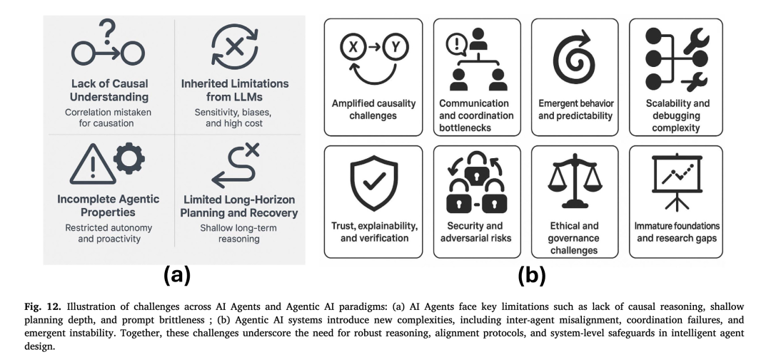 | 面临挑战 | AI Agent | Agentic AI | 提出的解决方案 |