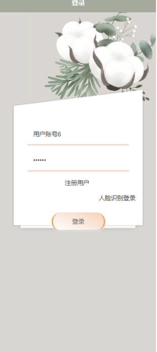 首先双击打开APP,连上网络之后会显示出本系统的登录界面,这是进入APP的第初始页面“登录”,能成功进入到该登录界面则代表APP开启是成功的,接下来就可以操作本系统所带有的其他所有的功能。用户登录界面如图5-2所示。