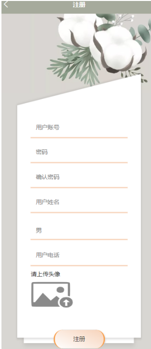 第一次使用本APP的使用者,首先是要进行注册,点击“注册”,然后就会进入到注册的页面里面,将用户信息录入注册表,确认信息正确后,系统才会进入登录界面,用户登录成功后可使用本APP所提供的所有功能。用户注册界面如图5-1所示。