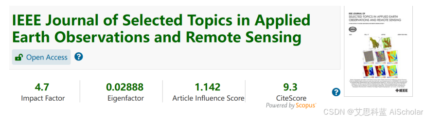 《IEEE Journal of Selected Topics in Applied Earth Observations and Remote Sensing》(JSTARS, IF 4.715)现征集"AI遥感应用中的数据质量问题与解决方案"专刊论文。该Q1期刊由IEEE地球科学与遥感学会出版,聚焦遥感技术前沿应用。专刊涵盖AI遥感数据质量评估、高维数据清理、传感器误差校
