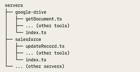 一种直观的思路是,将所有连接的MCP服务器及其工具,生成一个清晰的文件目录树结构。