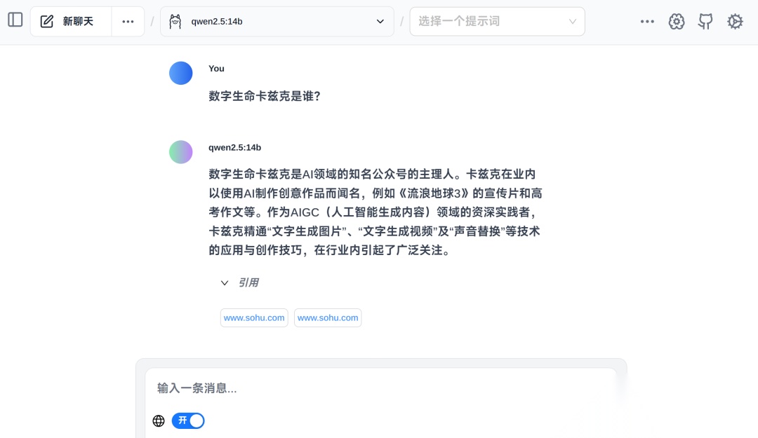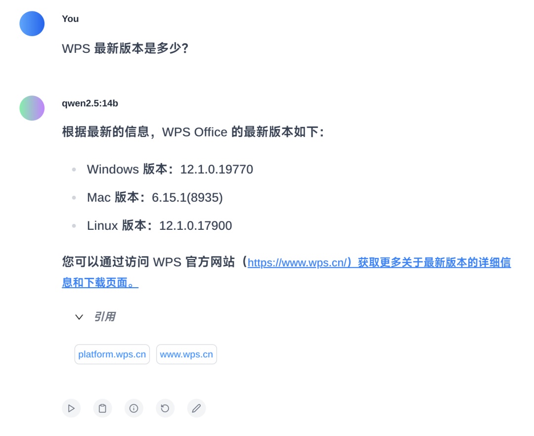 让我们试一试搜索最新的信息,确认 AI 是从网上找的答案。