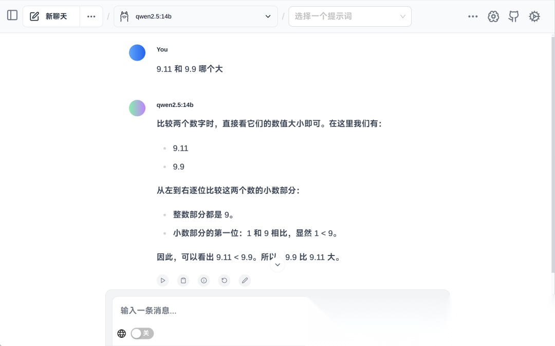 当你看到这个界面的时候,恭喜你,你已经完成了大模型的本地部署。