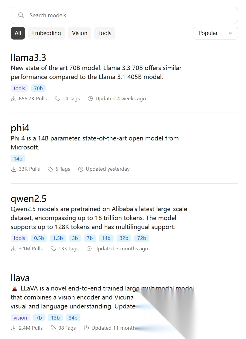 Ollama 的模型命名相对规则,遵循下面规则。