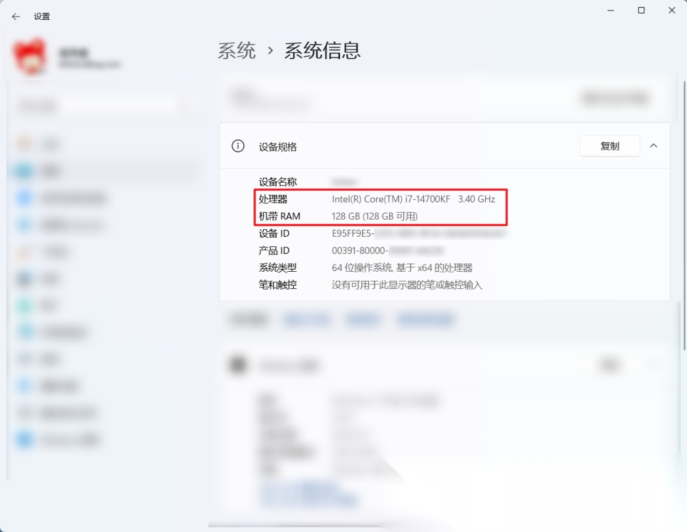 按下 Win + X,选择"系统",在系统页面可以查看内存大小。