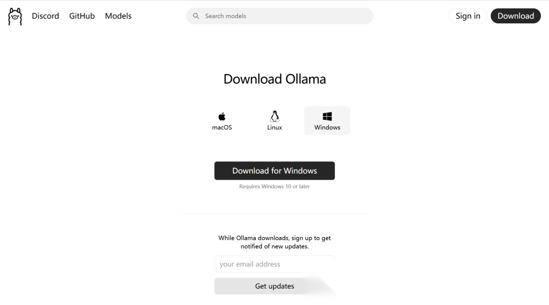 浏览器打开 ollama.com ,点击下载按钮,选择对应的操作系统可以了。