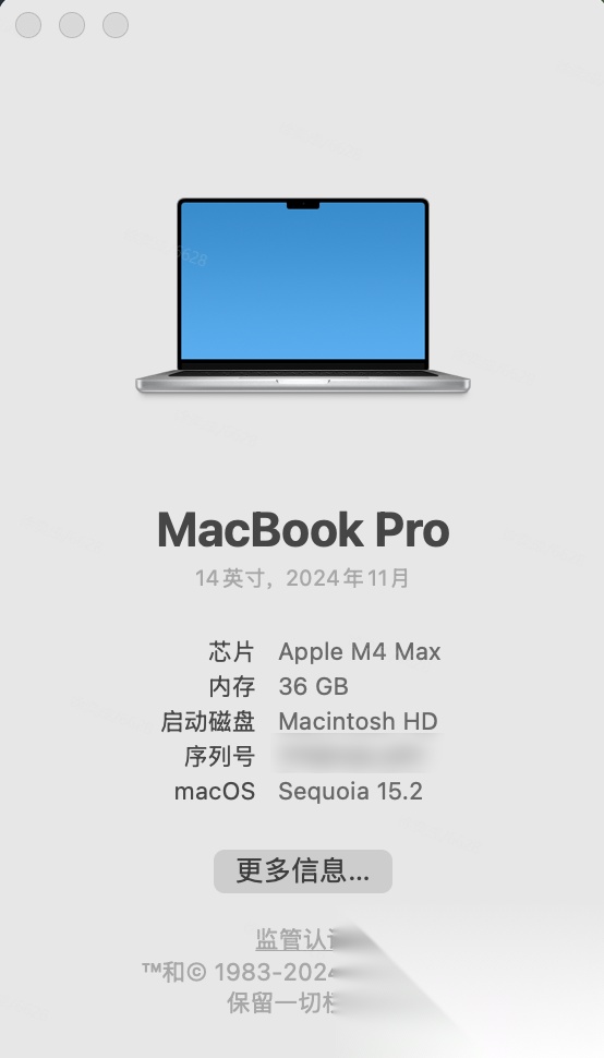 点击左上角苹果图标,选择"关于本机",可以看到内存大小和芯片型号。
