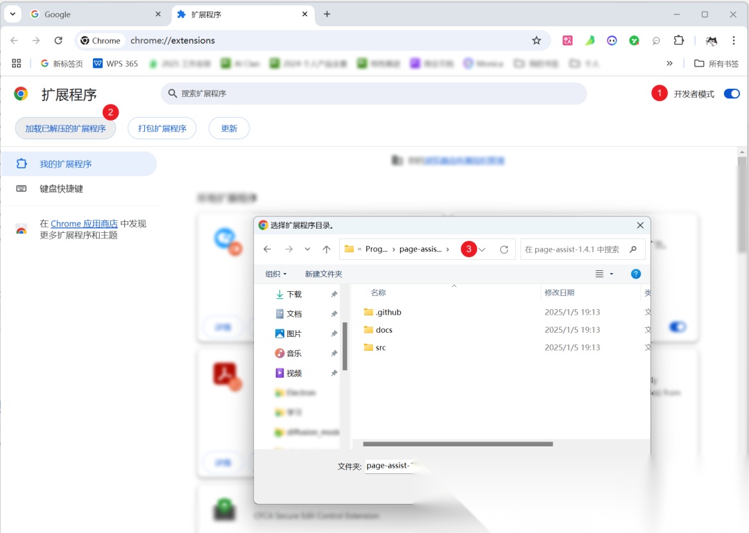 打开开发者模式之后,点击加载已解压的扩展程序。