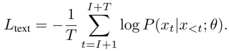 给定对应的文本描述,分词为 T 个token:x_{I+1}, x_{I+2}, ..., x_{I+T}