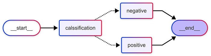 # LLM clientllm = ChatGoogleGenerativeAI( model="gemini-2.0-flash", api_key=GOOGLE_API_KEY, system_instruction="""You are a helpful assistant that can classify text sentiment and respond accordingly.""")# State definitionclassState(dict): text: str sentiment: str response: str# Nodesdefcalssification(state: State) -> str: """Classify sentiment.""" prompt = f"Is the following text positive or negative? Answer with one word only: Positive or Negative.\n\n{state['text']}" resp = llm.invoke(prompt) sentiment = resp.content.strip().lower() state["sentiment"] = sentiment return statedefpositive_node(state: State) -> State: prompt = f"Generate an encouraging reply to this positive text:\n\n{state['text']}" resp = llm.invoke(prompt) state["response"] = resp.content.strip() return statedefnegative_node(state: State) -> State: prompt = f"Generate a supportive reply to this negative text:\n\n{state['text']}" resp = llm.invoke(prompt) state["response"] = resp.content.strip() return statedefrouter_func(state: State) -> Literal["positive", "negative"]: """Return next node name.""" return"positive"if"positive"in state["sentiment"] else"negative"# Build the graphworkflow = StateGraph(State)workflow.add_node("calssification", calssification)workflow.add_node("positive", positive_node)workflow.add_node("negative", negative_node)# classify node decides the next stepworkflow.set_entry_point("calssification")workflow.add_conditional_edges("calssification", router_func, { "positive": "positive", "negative": "negative",})# Both branches lead to ENDworkflow.add_edge("positive", END)workflow.add_edge("negative", END)graph = workflow.compile()