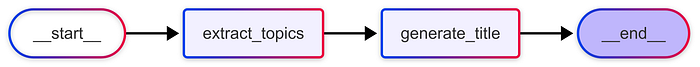 # Define LLM clientllm = ChatGoogleGenerativeAI( model="gemini-2.0-flash", api_key=GOOGLE_API_KEY, system_instruction="""You are an expert technical writer. Always give clear, concise, and straight-to-the-point answers.""")# Define the graph stateclassState(dict): text: str topics: str title: str# Define nodesdefextract_topics(state: State) -> State: prompt = f"Extract 1-3 key topics from the following text:\n\n{state['text']}" resp = llm.invoke(prompt) state["topics"] = resp.content.strip() return statedefgenerate_title(state: State) -> State: prompt = f"Generate two catchy blog titles for each one these topics:\n\n{state['topics']}" resp = llm.invoke(prompt) state["title"] = resp.content.strip() return state# Build the graphworkflow = StateGraph(State)workflow.add_node("extract_topics", extract_topics)workflow.add_node("generate_title", generate_title)# Define the node connectionsworkflow.set_entry_point("extract_topics")workflow.add_edge("extract_topics", "generate_title")workflow.add_edge("generate_title", END)# Compile runnable graphgraph = workflow.compile()